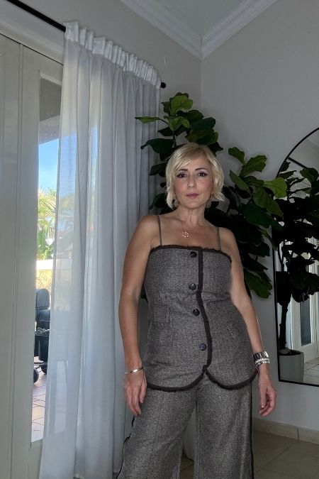 El pantalón Sienna es la fusión perfecta entre sofisticación y comodidad. Con un corte wide leg de caída fluida y confección en tela texturizada, este diseño aporta elegancia sin esfuerzo. El detalle de ribete oscuro lateral le da un toque moderno y estilizado que alarga visualmente la silueta.