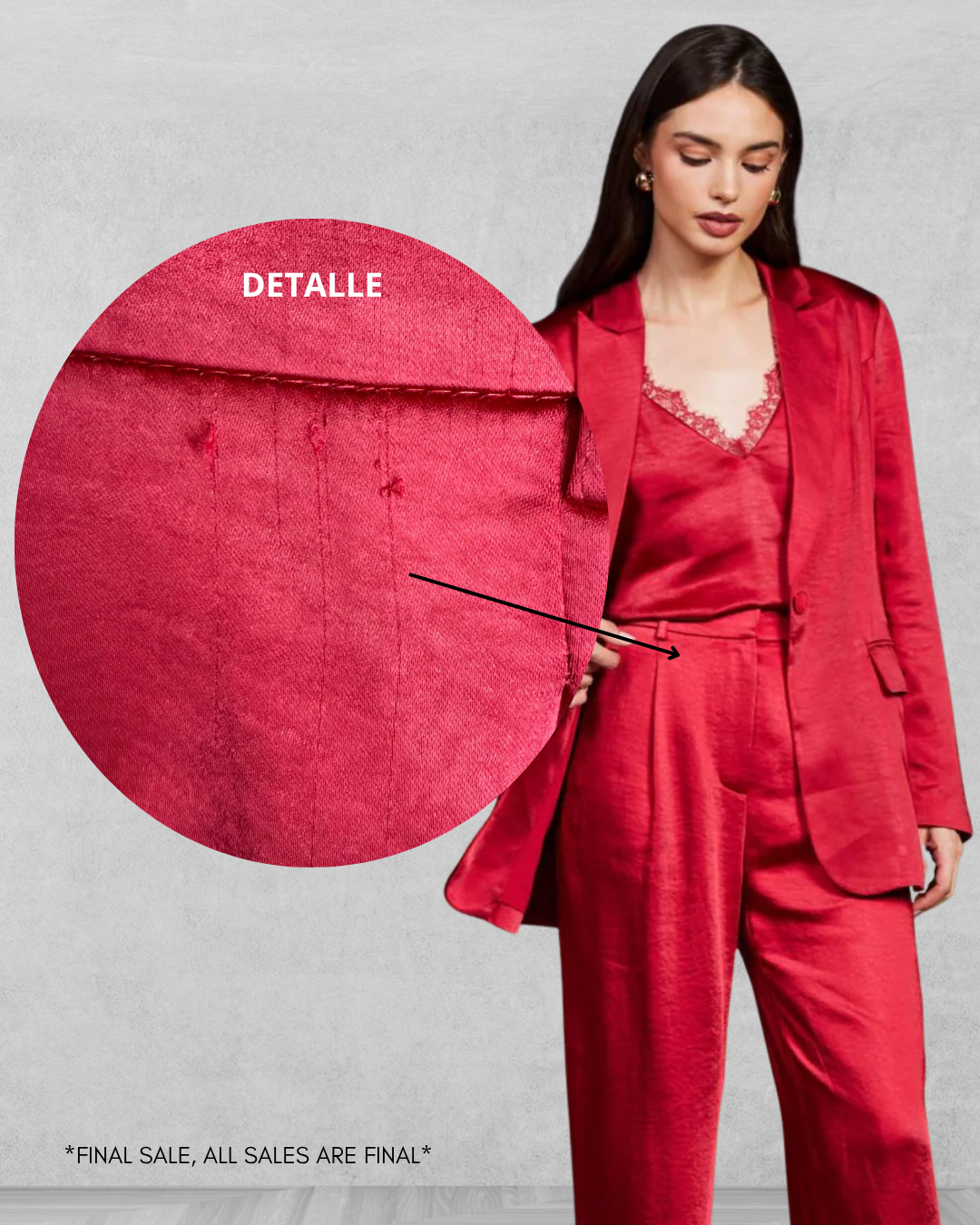 Incluye: Blazer de satén + Pantalón de pierna recta y alto.