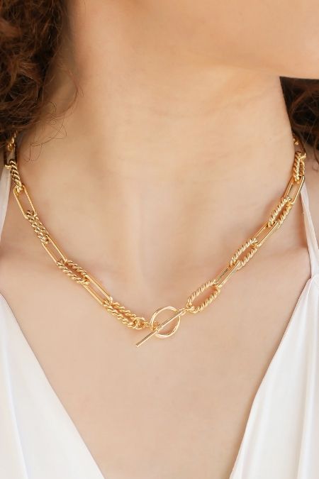Realza tu look con este collar de eslabones entrelazados disponible en dorado o plateado. Baño en oro 18K o triple baño en rodio resistente al agua. ¡Perfecto para usar solo o en capas! 💫disponible en dos tonos dorado y plateado.