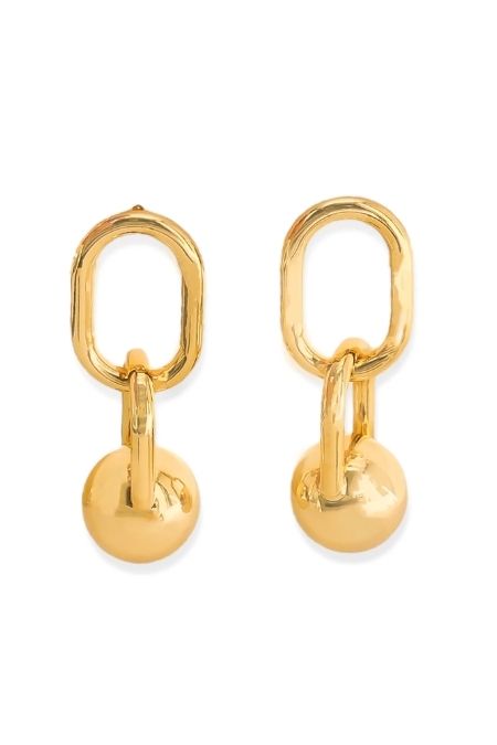 Elegancia moderna que no pasa desapercibida 💫 Estas pantallas tipo colgante combinan eslabón rectangular con esfera pulida para un look cómodo y llamativo. Perfectas para realzar cualquier outfit ✨