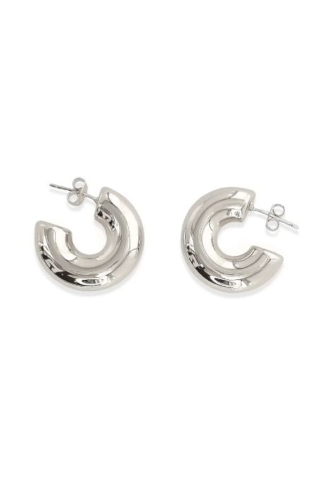 Aros ligeros con cierre a presión en forma de "C" y baño de rodio, de 2,5 cm de diámetro. Estos ligeros pendientes están elaborados con materiales de alta calidad y tienen un acabado brillante.