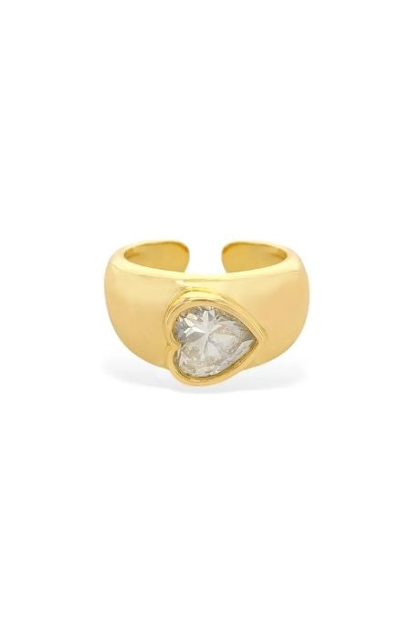 Anillo abierto con diseño de corazón en cristal. Elegante, romántico y perfecto para llevar solo o en combinación.