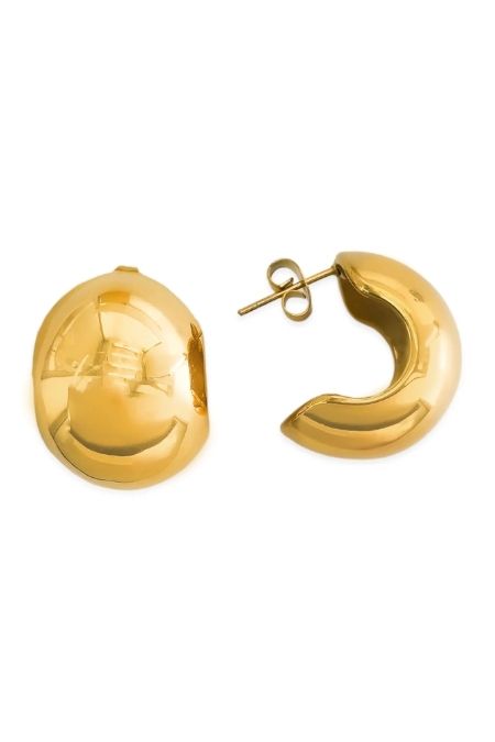 Dale un toque sofisticado a tu look con nuestras pantallas Luna Dorada, de acabado bold y diseño curvo tipo “chunky hoop”. Su forma elegante y moderna las convierte en un básico versátil para elevar cualquier outfit, desde casual hasta de noche.