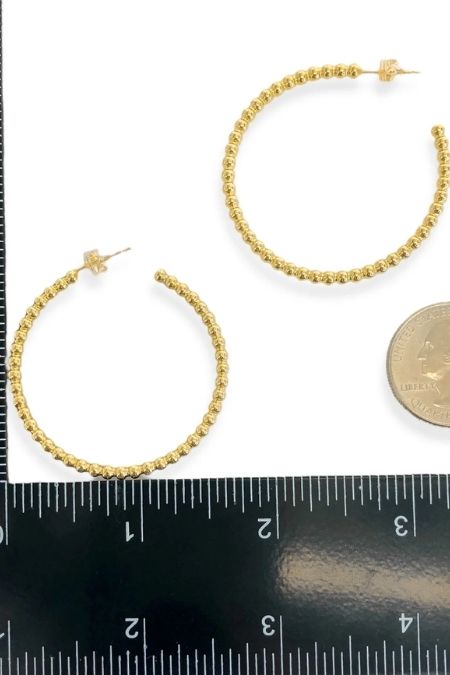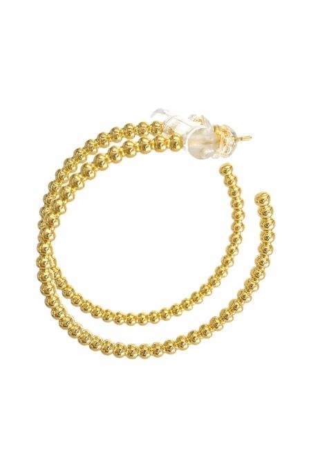 Diseño elegante y moderno con detalle de bolitas continuas que forman una argolla llamativa pero ligera. Disponibles en dos tonos: